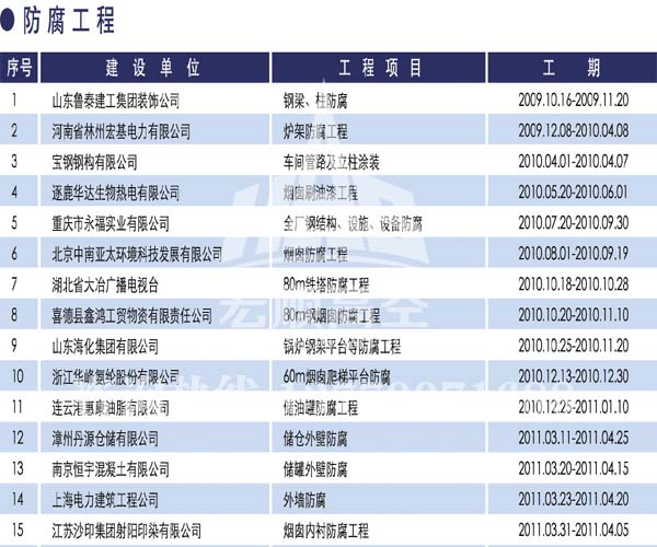 - 宏順建設核心技術 宏順建設專業防腐各種水塔防腐,儲油罐防腐,管道防腐,吊機防腐,龍門吊防腐,水泥筒倉防腐工程,有多年的成功經驗,施工業績遍布全國各地... 了解詳情